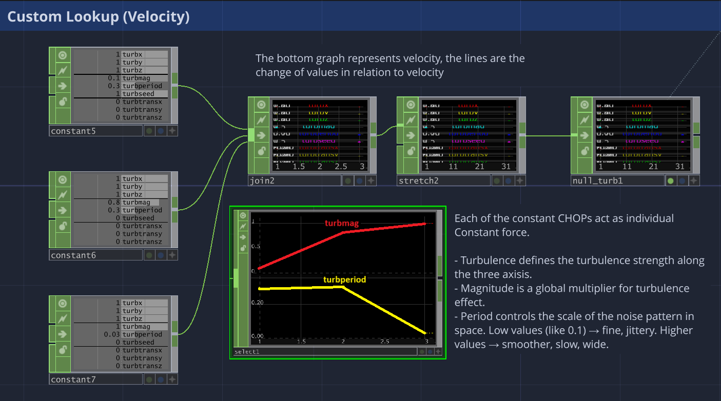 One highlight is the custom velocity lookup table. This defines how turbulence changes as particles speed up:
