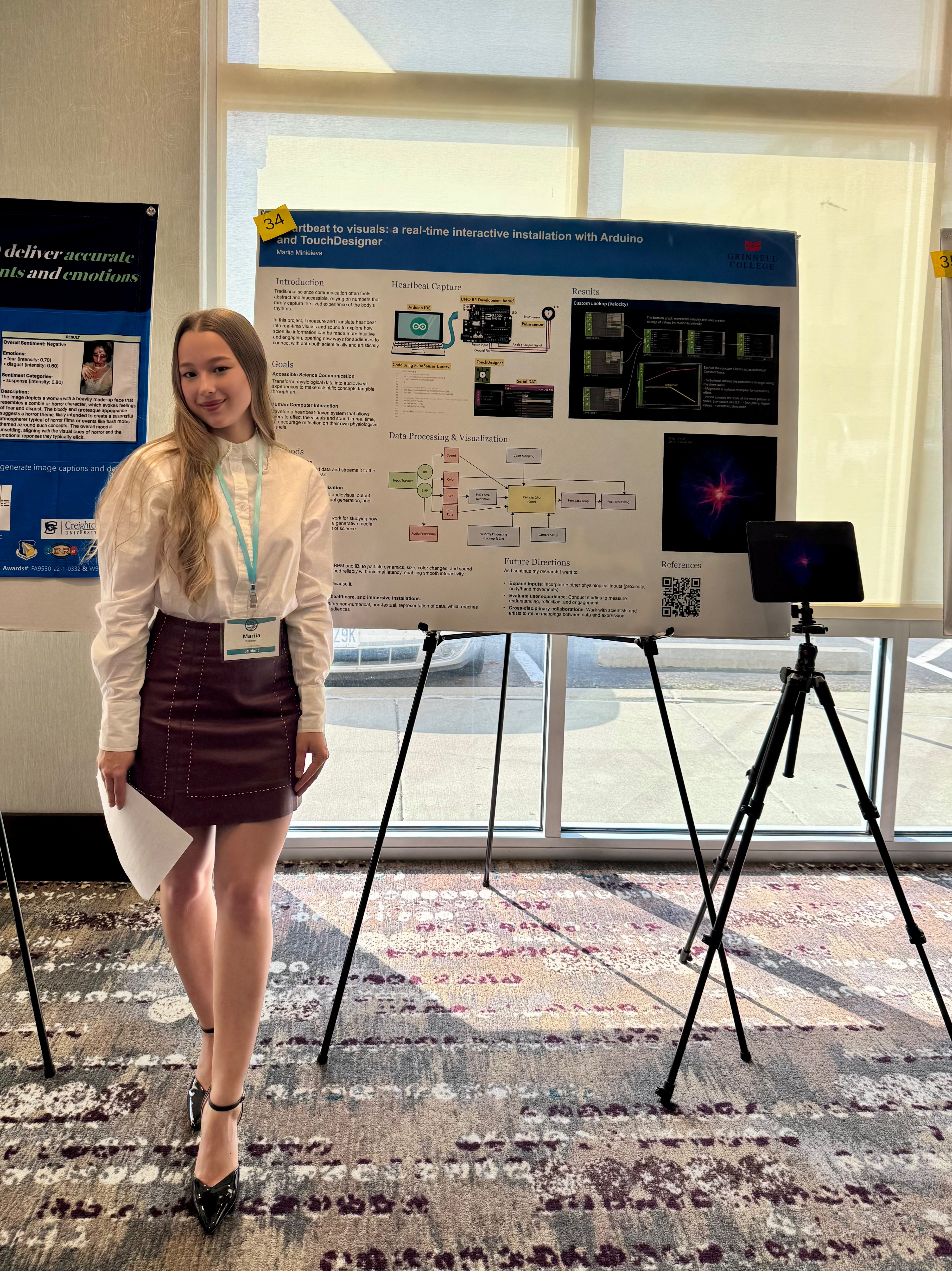 This work is applicable in education, healthcare, and immersive installations. In education, the system transforms abstract physiological data into visuals and sounds that students can intuitively grasp. In healthcare, the approach can support biofeedback and mindfulness by giving patients immediate, sensory ways to monitor and regulate their own physiological signals. In immersive art, it creates interactive environments where audiences can literally “see and hear” their bodies in real time, fostering personal connection and curiosity.