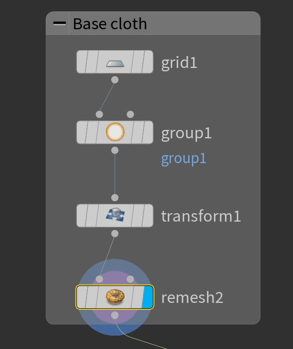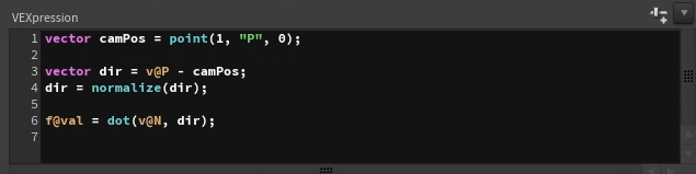 To add a more cartoonish and visually engaging effect to the vellum cloth, I used VEX coding to create the "outlines." The first step was calculating the val attribute by taking the dot product between the normal vector at each point and the direction vector dir that points from the point to the camera. The direction vector is derived by subtracting the camera's position from each point's position, then normalizing it. The result of this dot product is a value between -1 and 1, where 1 indicates the normal is facing directly at the camera, 0 means it's perpendicular to the camera's view, and -1 indicates the normal is facing away. I focused on values close to zero, where the normal is nearly perpendicular to the camera, which are typically found along the edges or folds of the cloth.