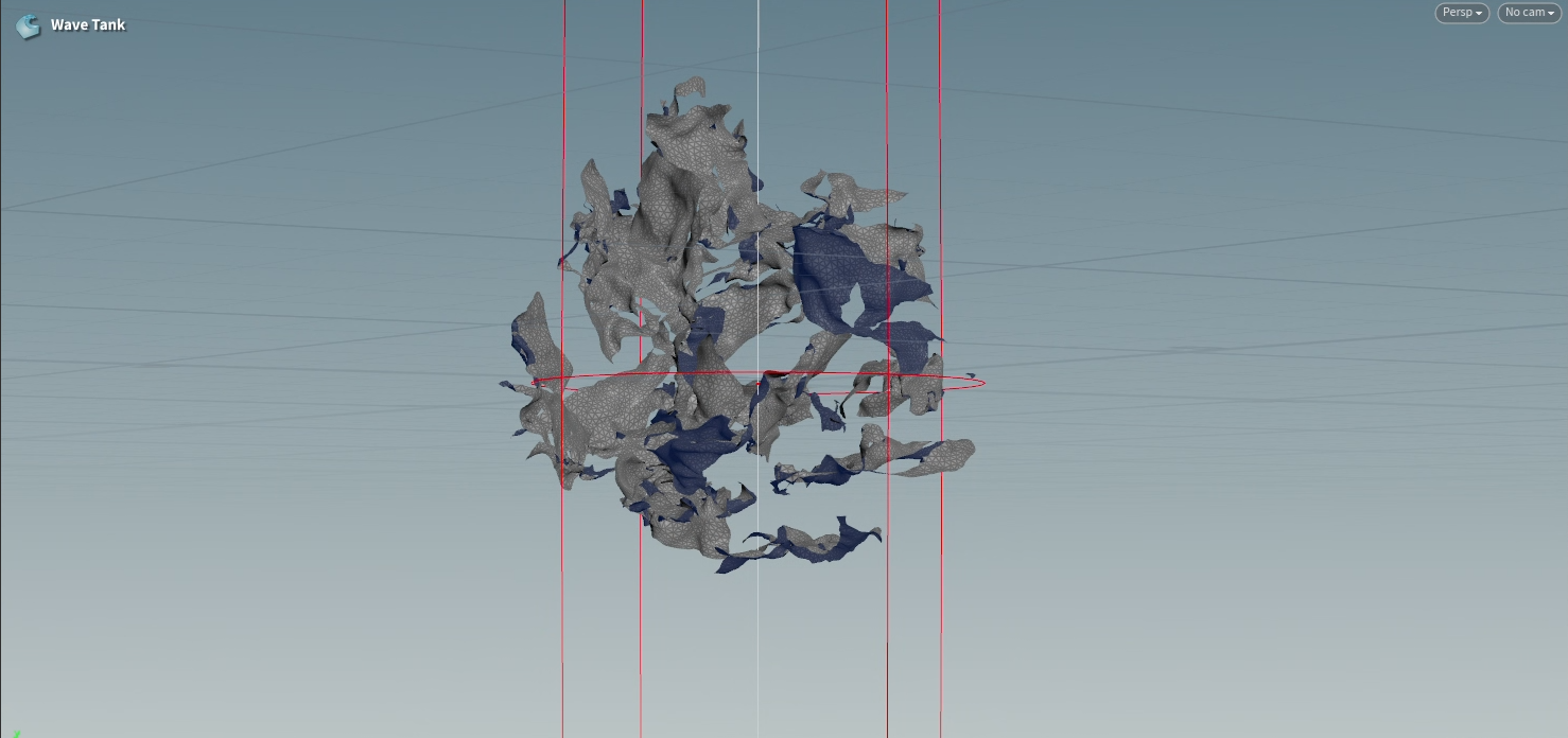 To make the cloth tear naturally as it swirled, I used Vellum weld constraints to stitch the pieces, produced by the Edge Fracture node, together. I set a breaking threshold of 0.0004 to ensure the pieces would tear apart when forces started to stretch them beyond their limits. As the geometry moved and forces acted on it, the cloth naturally began to tear, adding realism to the simulation.